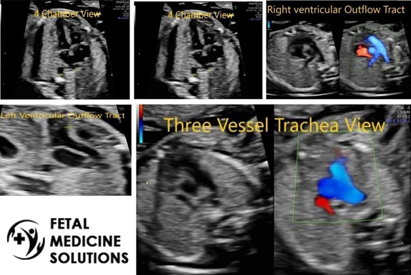 Many people restrict the assessment to 4 chamber view and outflow tracts and some only to 4 chamber view. This is not enough to rule out cardiac abnormalities. If these are not assessed in the anomaly scan, then fetal echocardiography is advised. We assess the fetal heart in detail in anomaly scan only.